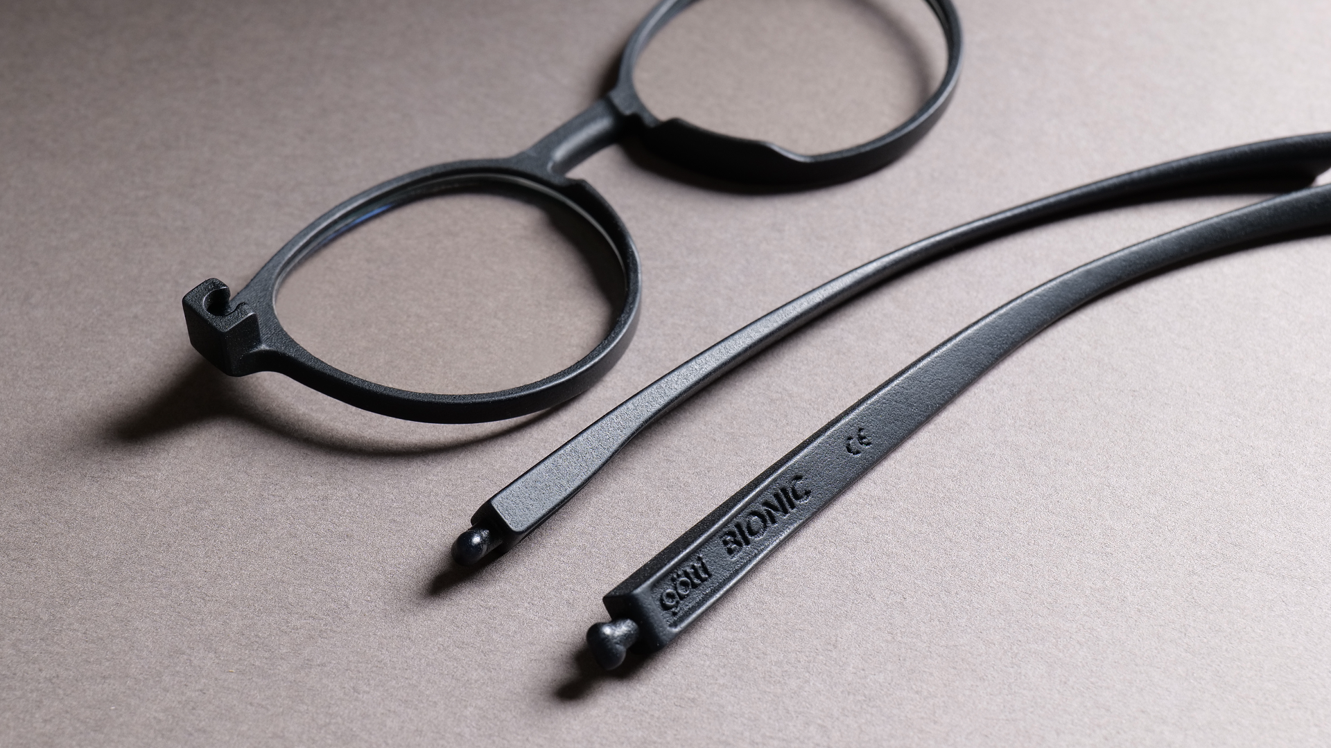 Mittels additiver Fertigung werden die Brillen aus einem Material auf der Basis von Samen der Rizinuspflanze, also einem nachwachsenden Rohstoff, produziert. Das biobasierte Polyamid verhält sich im Vergleich zu anderen 3D-gedruckten Fassungen flexibler und bietet so Spielraum für neue Konstruktionen. Inspiriert durch das menschliche Kugelgelenk ist ein neues Scharnier entstanden, durch welches die neue Kollektion auch zu ihrem Namen BIONIC kam.